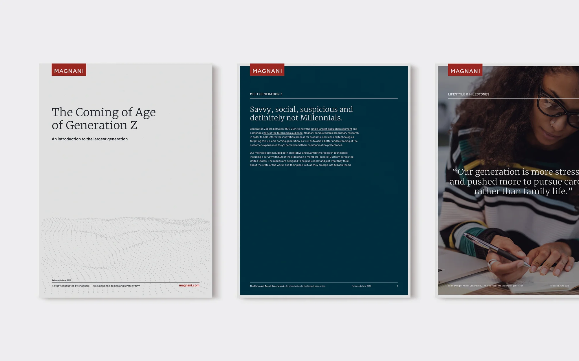 Magnani pivoted its position in the advertising industry, shifting their service offering from an integrated marketing agency to an experience design and strategy firm with experiential—driven and strategic creative solutions. It required a → visual overhaul to all aspects of Magnani to ensure clients could trust them not just with great creative, but with their business as a whole.